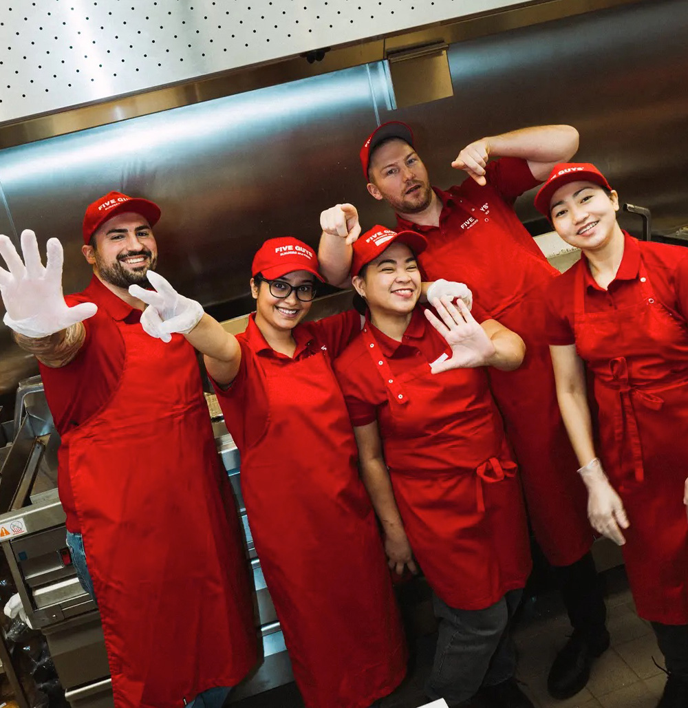 At Five Guys, the philosophy is simple: great burgers and fries, crafted in a clean restaurant run by friendly staff. The success of these company pillars depends on our crew members, which is why we want our employees to feel pride and ownership in this, their company. It doesn’t hurt to have some fun along the way either, right?