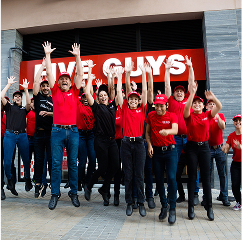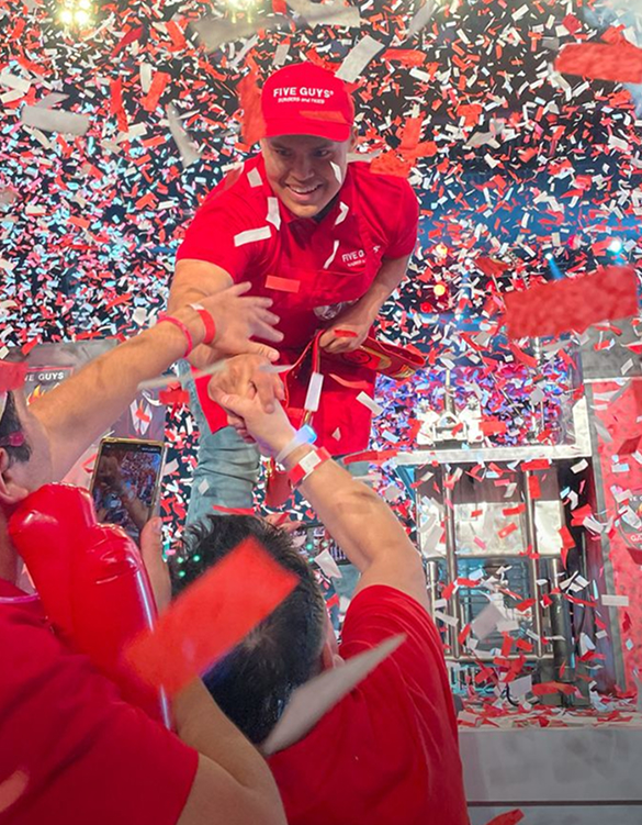 Each event in the Five Guys games is designed to test the teammates’ speediness and acumen. Contestants with the lowest overall time are deemed winners. Teammates compete first on a national level and advance through the bracket until eight international contestants compete for the championship.